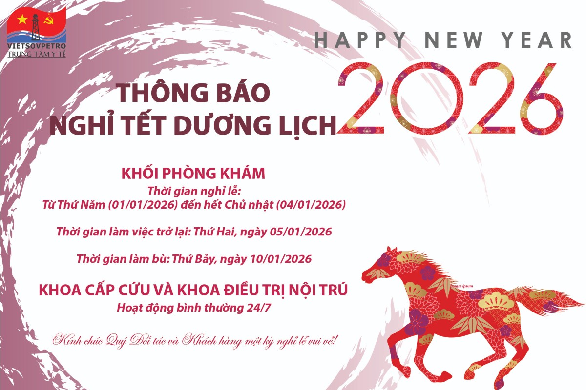 TRUNG TÂM Y TẾ VIETSOVPETRO THÔNG BÁO LỊCH NGHỈ TẾT DƯƠNG LỊCH 2026